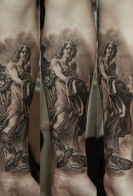 小臂壮观的超现实主义风格黑色神秘女性纹身图案