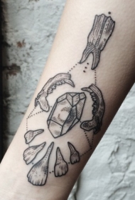 手臂雕刻风格黑色匿名面具和骷髅纹身图案