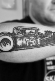 手臂黑灰风格汽车纹身图案