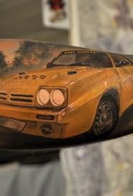 小臂黄色的汽车纹身图案