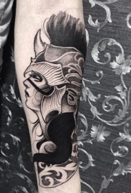 小臂惊人的黑色神秘女人与头盔纹身图案