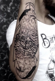 小臂惊人的黑色印度骷髅和羽毛纹身图案