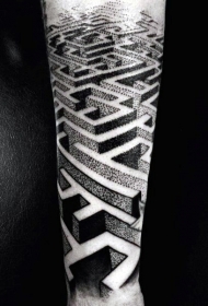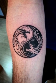 小臂阴阳八卦符号黑色幻想龙纹身图案