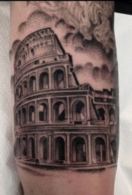 小臂黑色点刺古罗马竞技场纹身图案