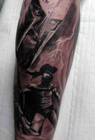 小臂优秀的黑色斯巴达勇士与闪电纹身图案