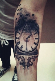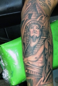 手臂古埃及主题黑色法老和金字塔纹身图案