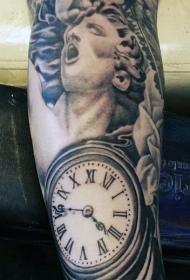 手臂写实的黑白怪物头骨与骷髅纹身图案
