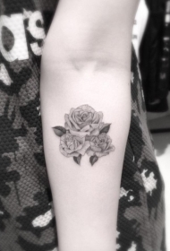 小臂小黑色小清新三朵玫瑰花纹身图案