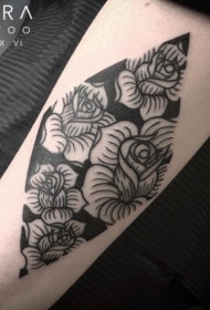 手臂简单的黑色雕刻风格玫瑰花纹身图案