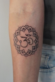 小臂黑色装饰梵花与彩色钻石纹身图案