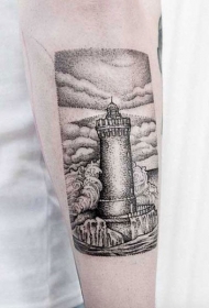 小臂神秘设计的黑白旧时钟金字塔纹身图案