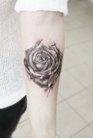 小臂有趣的黑色损坏的玫瑰花纹身图案