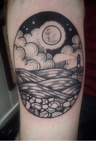 小臂黑色线条插画风格邪恶的狼纹身图案