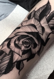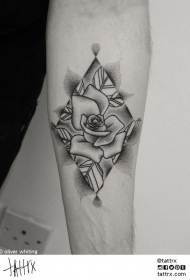 小臂黑色三角形轮廓与玫瑰花纹身图案