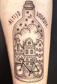小臂old school黑色心脏与睡觉狐狸纹身图案
