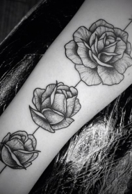 小臂黑灰三朵不同程度玫瑰花纹身图案