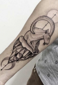 手臂黑色的鹿头骷髅和三角形纹身图案