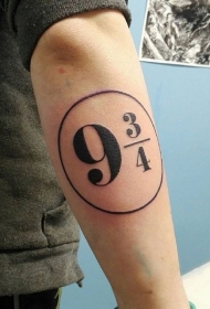 小臂黑色星球大战徽章与神秘花卉纹身图案