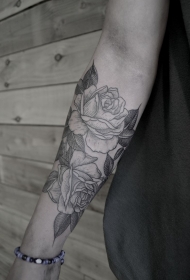 手臂漂亮的黑色线条女孩肖像纹身图案