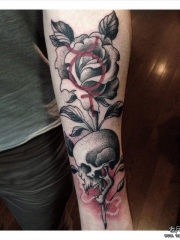 小臂欧美猫头鹰彩色泼墨纹身图案