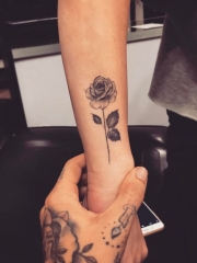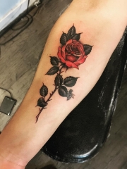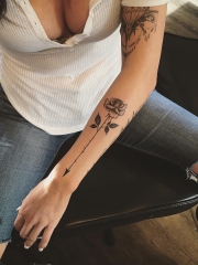 手前臂上黑灰色恐怖的邪恶的女人图案纹身