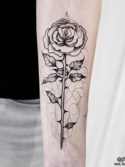 小臂欧美线条点刺蝴蝶花卉纹身图案