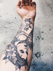 手前臂上漂亮花朵和单色美丽女性纹身图片