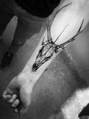 小臂马钢笔画风格黑灰纹身图案