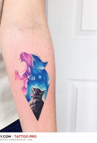 手臂水彩风格的墨水瓶与羽毛和猫爪纹身图案
