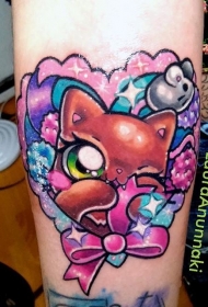 插画风格彩色幻想猫与星星蝴蝶结纹身图案