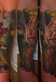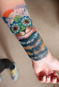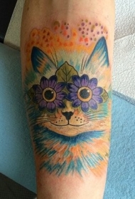 小臂彩色滑稽的猫与太阳镜纹身图案
