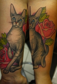 new school彩色可爱的猫与帽子和书籍纹身图案