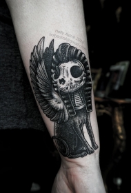 小臂石雕风格有趣的埃及恶魔猫纹身图案
