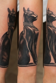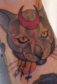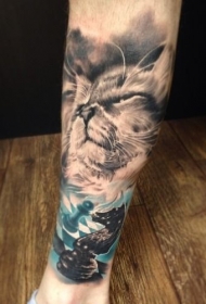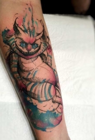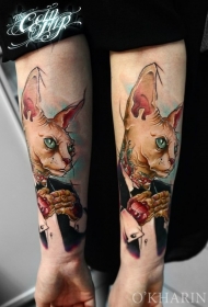 手臂可爱的猫与花朵和蝴蝶纹身图案