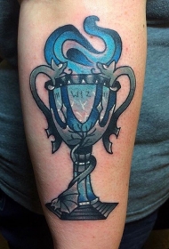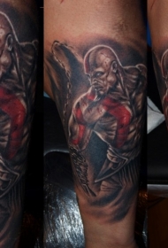 手臂彩色逼真的血腥野蛮人物纹身图案