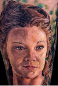 手臂逼真的彩色丘巴卡肖像纹身图案