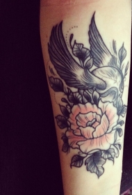 手臂黑色蜻蜓的翅膀与钥匙纹身图案