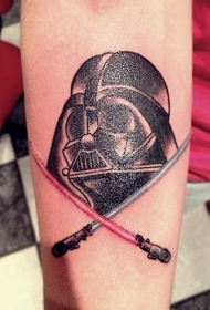 手臂彩色达斯·维德的头盔和玫瑰纹身