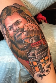 手臂老派风格的彩色巫师与灯纹身图案