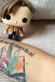 手臂水彩涂料翻开的书纹身图案