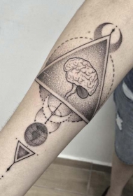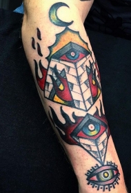 手臂老派风格的彩色神秘金字塔与眼睛纹身