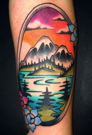 手臂简单的彩绘美人鱼与大灯塔纹身