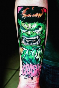 手臂漫画风格的彩色绿巨人纹身图片