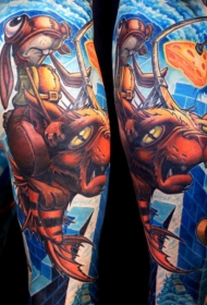 手臂彩色卡通主题的各种英雄纹身