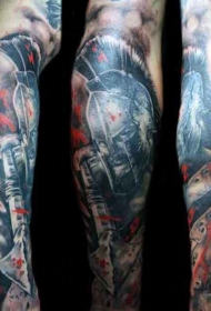 手臂彩色血腥的斯巴达国王纹身图案