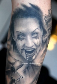 手臂灰色恐怖风格血腥女人肖像纹身