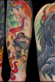 手臂彩色逼真的各种动物纹身图案