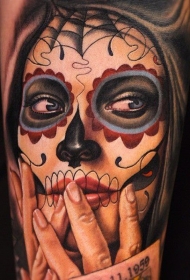 手臂墨西哥风格的彩色女人肖像纹身