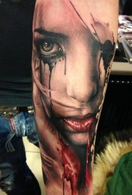 手臂彩色恐怖风格血腥妇女肖像纹身