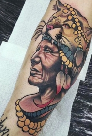 手臂彩色印第安人肖像纹身图案